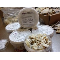 Características: Sub-produto de bacalhau salgado verde colocado em salmoura. Apresentam teor de humidade entre 51% e 58% e um teor de sal superior ou igual a 16%. Sem corantes nem conservantes.